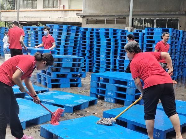 地臺(tái)板周轉(zhuǎn)于倉(cāng)庫(kù)、生產(chǎn)車(chē)間,其清潔衛(wèi)生狀況將會(huì)直接影響物料的質(zhì)量,因此地臺(tái)板的清潔是倉(cāng)庫(kù)非常重視的一項(xiàng)常規(guī)工作。按照活動(dòng)計(jì)劃,倉(cāng)儲(chǔ)部黨員邱新林同志作現(xiàn)場(chǎng)安全培訓(xùn),重點(diǎn)要求大家做到安全工作“三不傷害原則”:不傷害自己、不傷害他人、不被別人傷害,并指導(dǎo)大家如何安全正確操作移動(dòng)電器,提醒現(xiàn)場(chǎng)操作過(guò)程注意個(gè)人防滑、防碰撞傷害等安全事項(xiàng)。隨后在支部書(shū)記梁杰云的帶領(lǐng)下,大家分工協(xié)作,熱火朝天的開(kāi)始了地臺(tái)板的清洗。經(jīng)過(guò)一輪辛勤勞作,看著一垛垛堆放整齊、一路擺開(kāi)的1012塊干凈的地臺(tái)板,大家臉上露出了舒心的笑容,收獲了勞動(dòng)的喜悅。