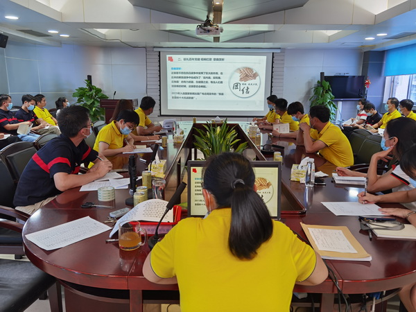 在中國共產(chǎn)黨建黨百年華誕即將到來之際,為進一步弘揚紅色文化,傳承紅色基因,增強支部黨員愛黨、愛國責(zé)任意識,2021年6月21日下午,總廠創(chuàng)新研發(fā)中心黨支部開展了“齊唱經(jīng)典紅歌 獻禮黨建百年”主題黨日活動??倧S黨委委員、副廠長王健松同志、支部書記王瑋同志參加了此次活動。