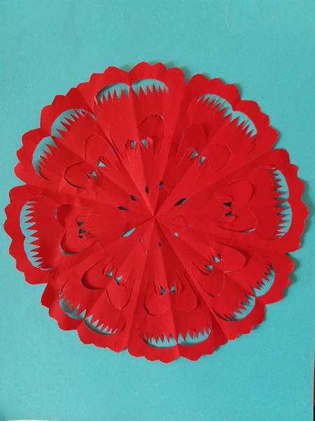 以紅色剪紙為載體,用巧手制作出黨徽,
